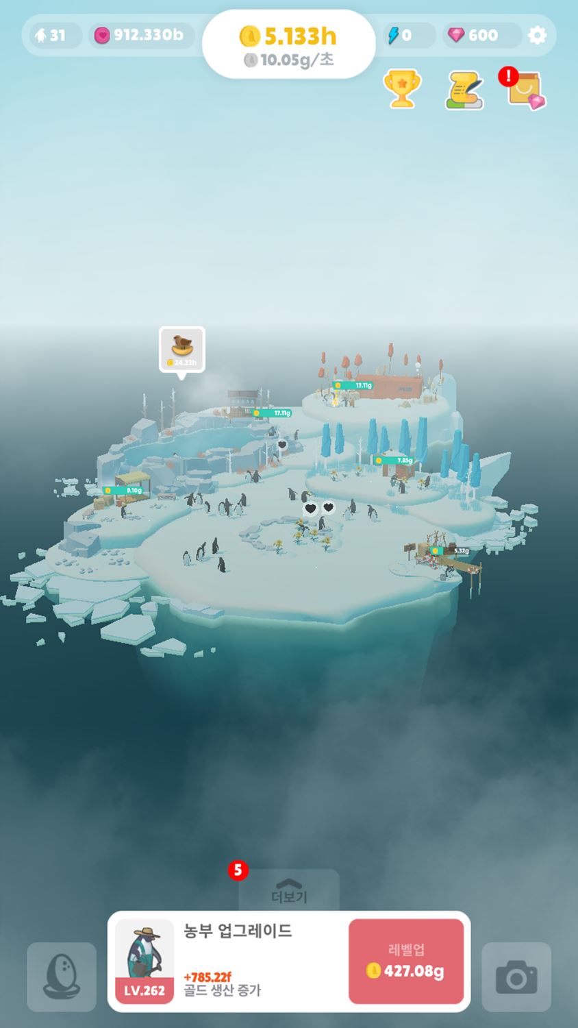 특별할 게 없는 단순한 게임인데 귀여운 펭귄을 위해 섬을 자꾸 가꿔주게 되네요 ^^