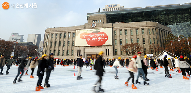 ‘서울광장 스케이트장’이 12월 20일부터 내년 2월 9일까지 52일간 운영된다. 올해는 지난해에 비해 아이스링크 면적을 21%확대(1,969㎡→2,265㎡)하여 시민들의 편의와 안전을 확보하였으며, 스케이트장 내‧외부가 쉽게 소통할 수 있도록 열린 공간으로 디자인을 변경했다.