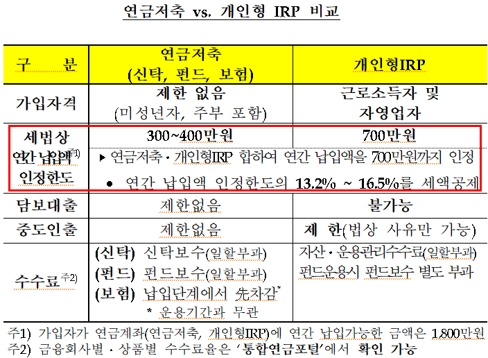 연금저축과는 달리 개인형IRP는 담보대출이 불가능하고 중도인출이 제한되는 점을 유념하여야 합니다.