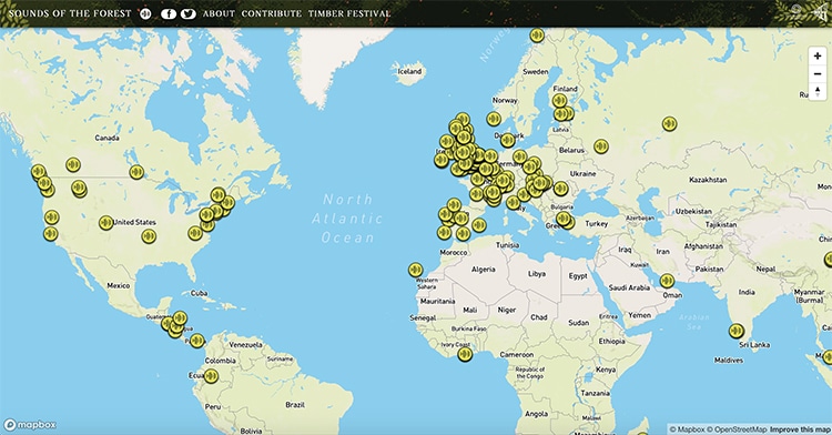 Timber Festival에서 만든 이 프로젝트는 소리를 통해 전 세계의 자연을 사랑하는 사람들을 하나로 묶는 것을 목표로합니다. 눈을 감고 전세계 숲으로 여행을 떠나보아요 ^^*