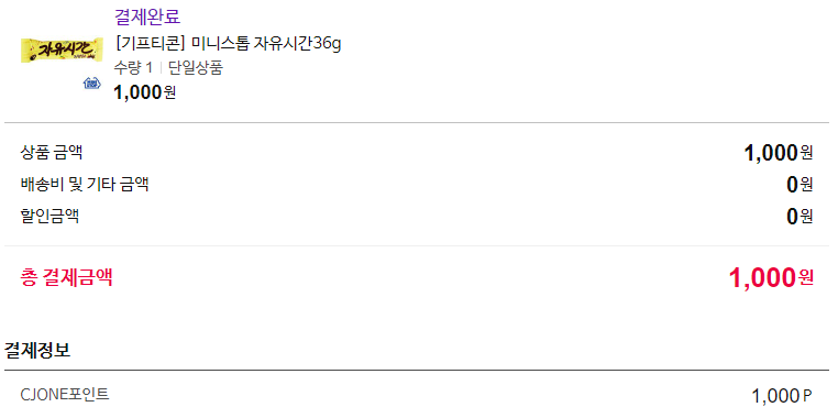 CJ ONSTYLE에서 1,000원짜리 기프티콘을 샀습니다.