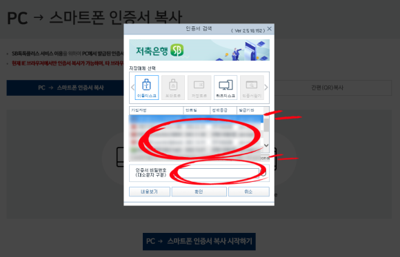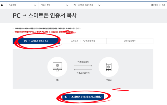 - PC) PC -> 스마트폰 인증서 복사