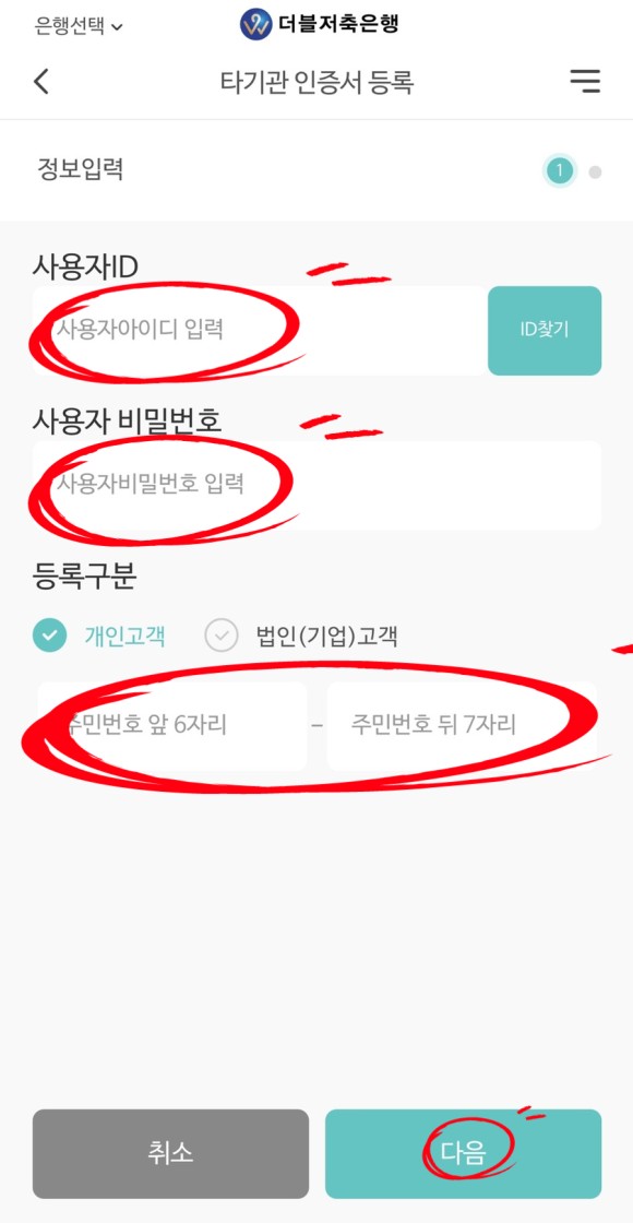 2) 타기관 공동인증서 등록
