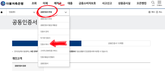 - PC) 해당 저축은행 홈페이지 > 인증센터